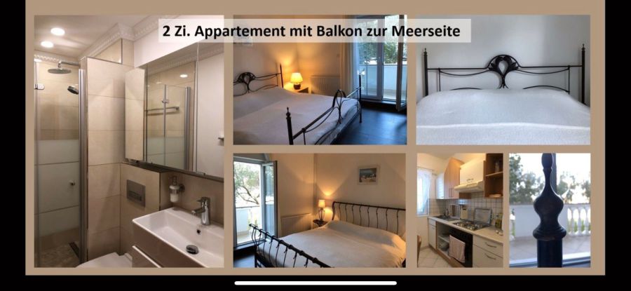 Das 2er Appartement liegt zur Meerseite hin, hat einen großen Balkon und eine kleine Küche. Jedes Doppelzimmer verfügt über ein eigenes Badezimmer & eine Klimaanlage.