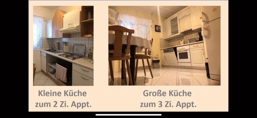 Das 3er Appartement hat 3 Doppelzimmer, 3 Badezimmer und eine große Küche.