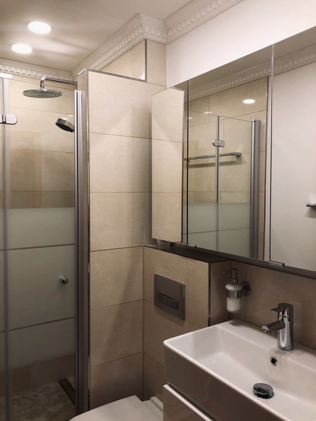 Jedes Doppelzimmer hat ein separates Bad, welches mit einem WC und einer Dusche ausgestattet ist.